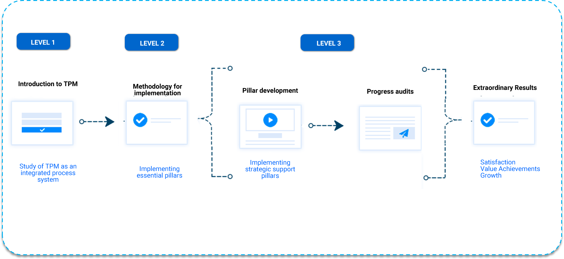 The implementation strategies of a TPM system with a comprehensive approach, involves the preparation and orderly development of the three processes that make up the system. The methodology of the TPM pillars has, since its inception, been structured in progressive and cumulative steps. This approach can be transferred to the processes of cultural change and improvement of management methods.